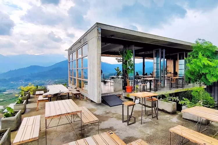 3. Concrete Batu Café – View Alam dan Desain Industrial